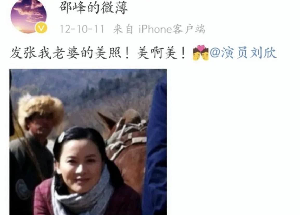 邵峯的微博中,都是關於妻子劉欣的照片和文字,經常讚美老婆長得好美。