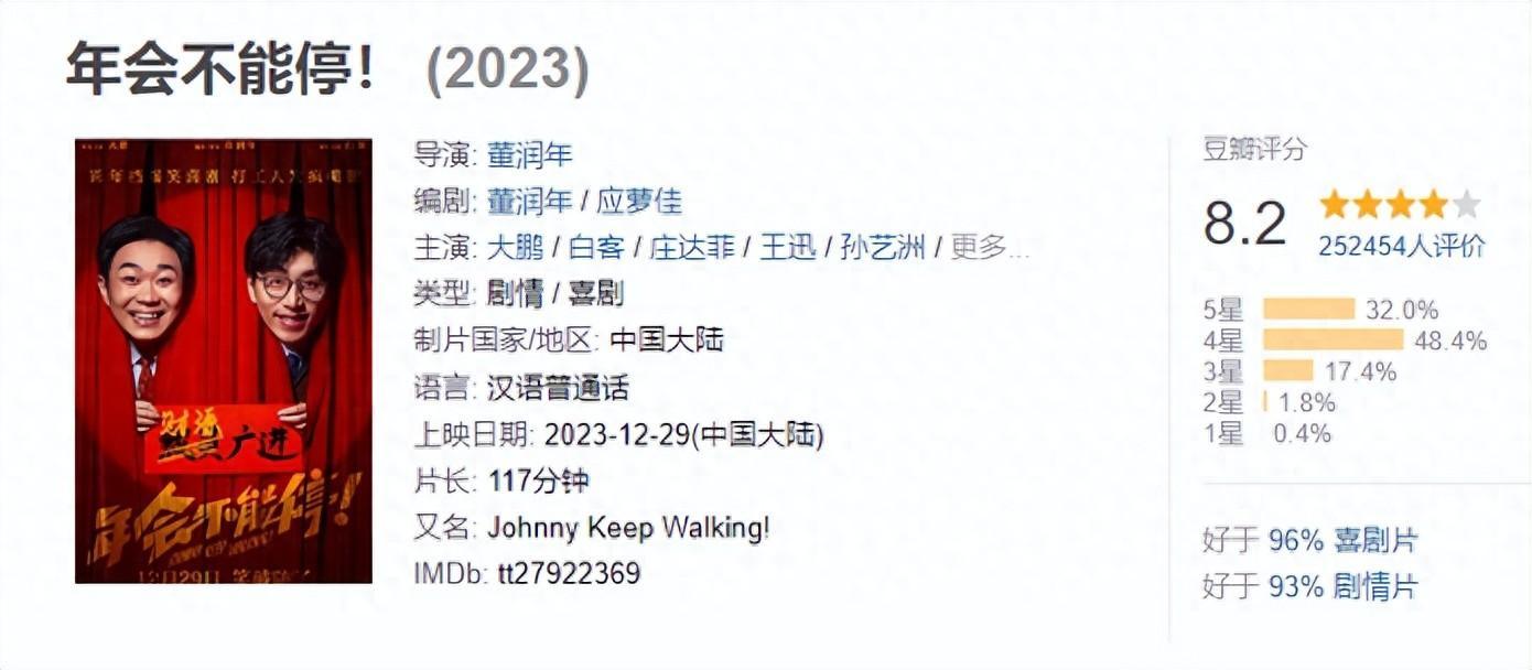 《年會不能停!》一經上映,實現了票房口碑雙豐收,輕鬆過億,豆瓣評分也達到8·2的高分。