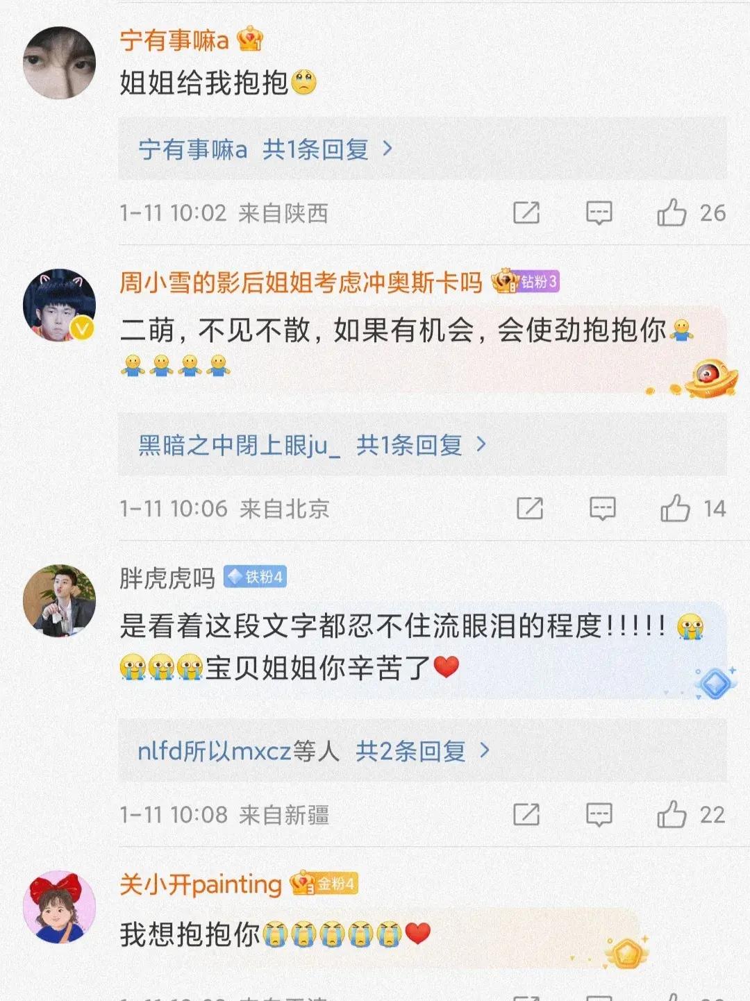 終於明白賈玲在發文中提到電影殺青,喫了五包威化巧克力,看來是在補充能量,好有畫面感,這一年的經歷,連網友都覺得想給賈玲一個大大的擁抱。