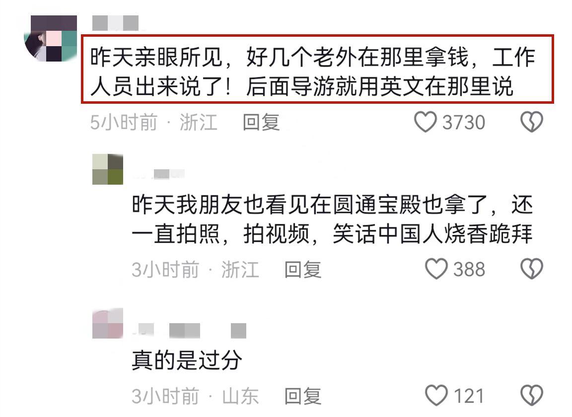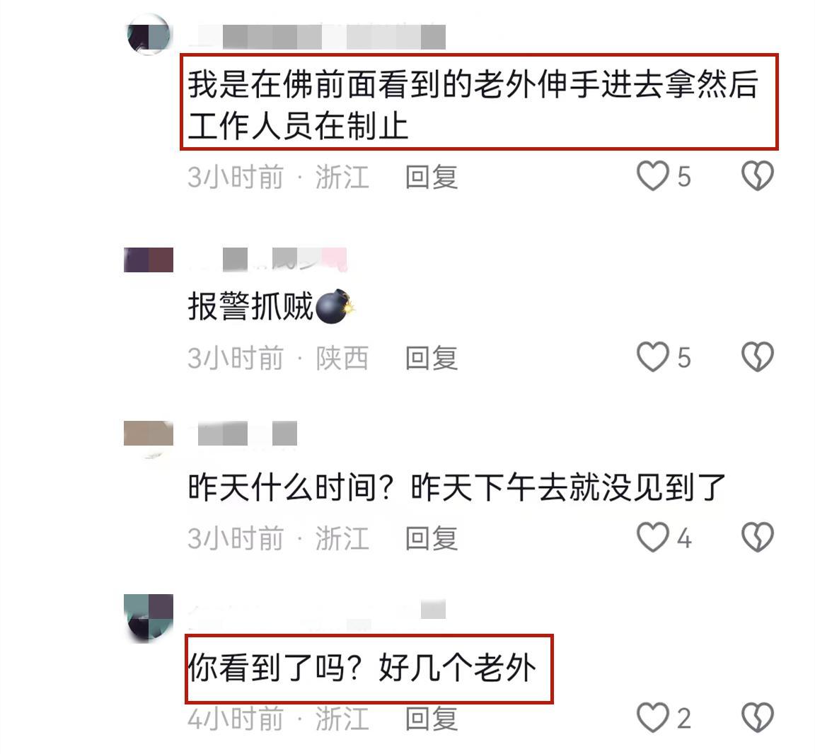 還有網友爆料稱她親眼看到這些外國遊客偷香火錢,並且還被工作人員制止了。