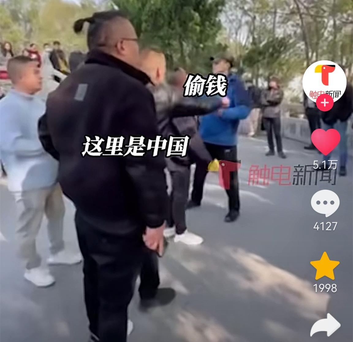 還有國內遊客憤怒地用手指着這些外國遊客說:“偷錢!”