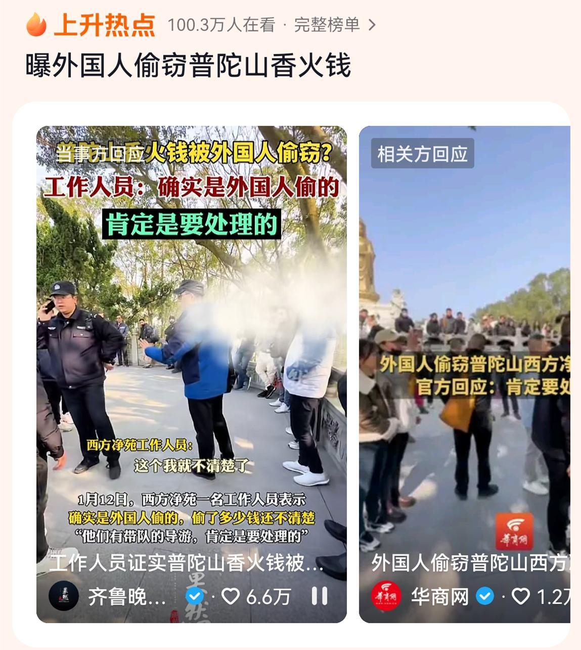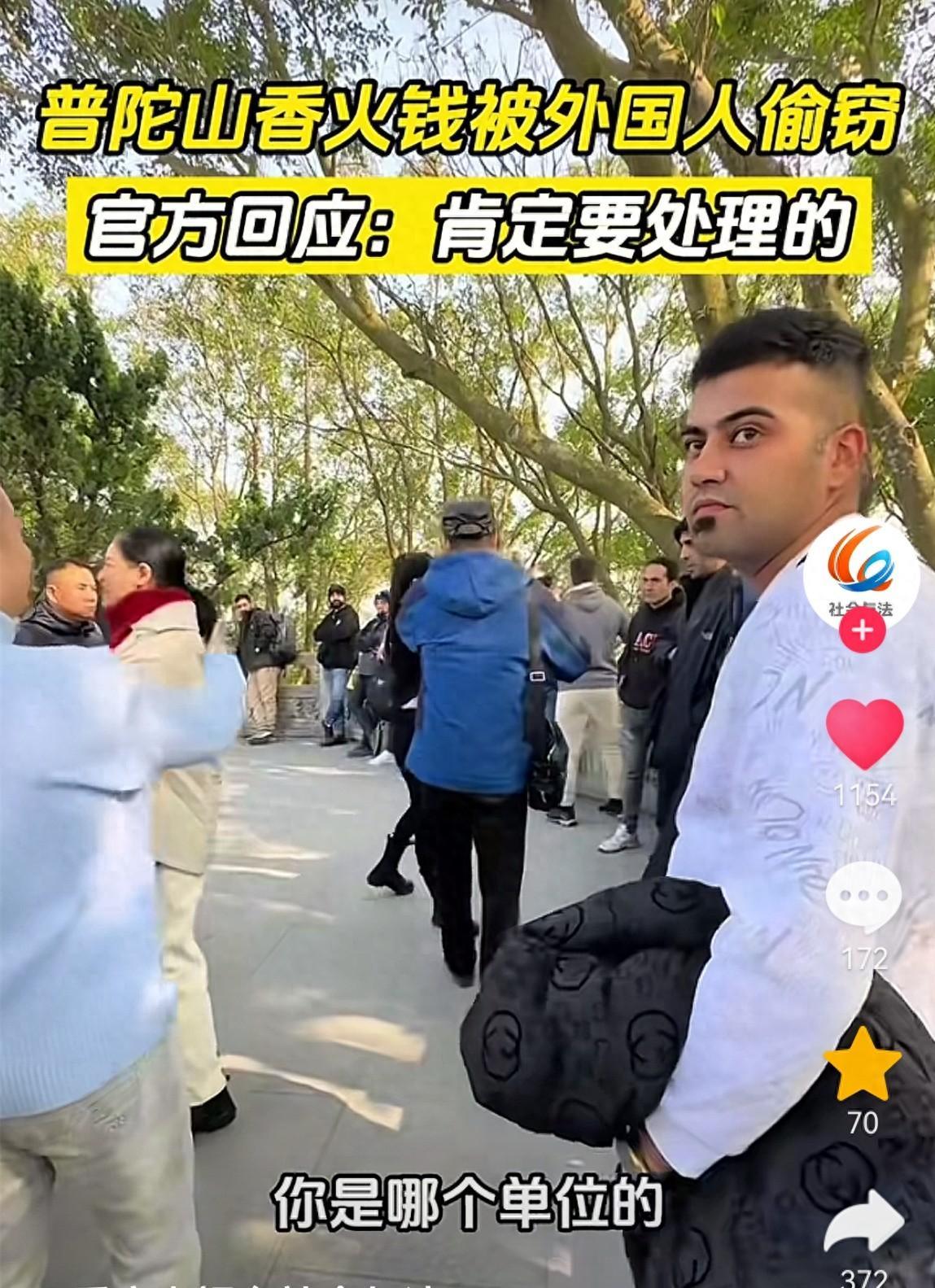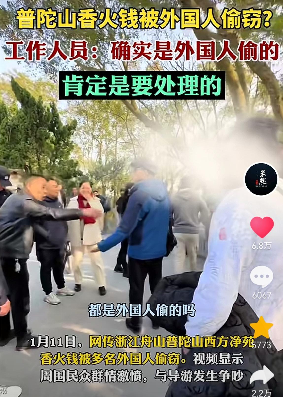 1月11日下午,一段視頻在網絡瘋傳,從視頻內容可知,事發於浙江舟山普陀山。