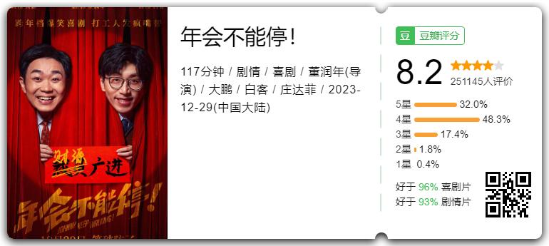 可以說,它無論是口碑,還是票房,都是“跨年檔”裏衝出的一匹黑馬,讓觀衆驚喜了一下。