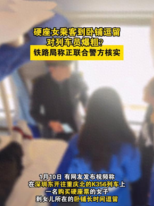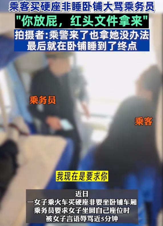 然而涉事女子買了硬座卻賴在硬臥車廂不走,當乘務員例行檢查發現這個情況後,便告知她這是越席乘坐,希望她能夠回到自己的座位上。