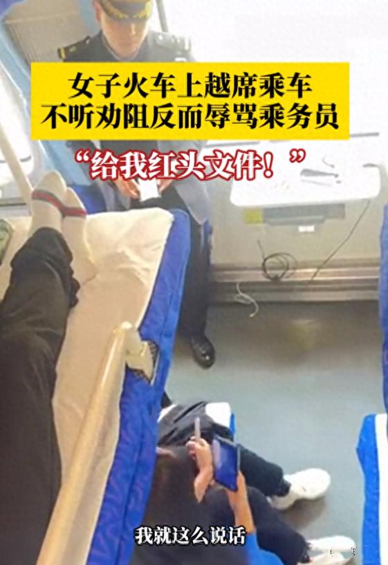 比如乘務員讓她回到自己的車廂時,她讓乘務員拿出紅頭文件。