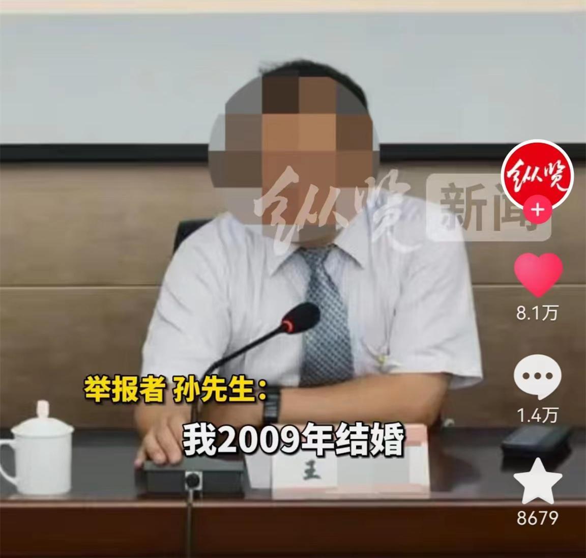 2023年11月7日,孫先生在網上實名舉報自己的妻子張某和張某的領導王某。