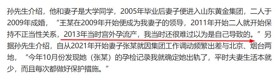 至於張某2019年流產,在發現妻子出軌後,孫先生曾質問她流掉的是誰的孩子?
