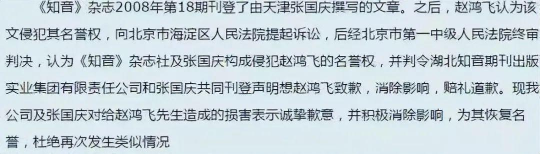 無奈之下,趙鴻飛以該文章侵犯了自己的名譽權和隱私權,直接一紙訴狀將《知音》雜誌和文章作者告上了法庭。