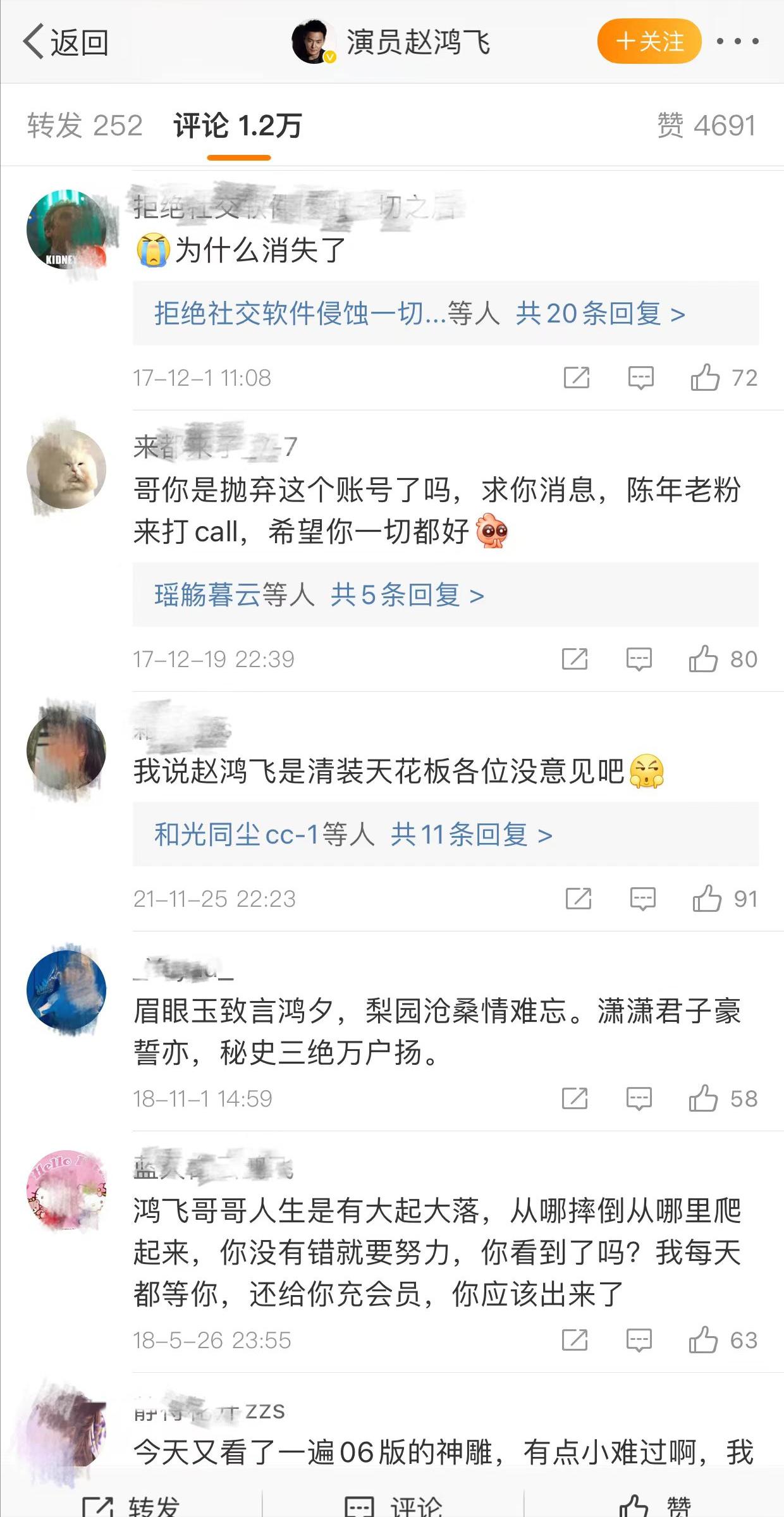 雖然消失在了大衆視野,但很多喜歡他的觀衆和網友,還是一直堅持在他的微博上留言。