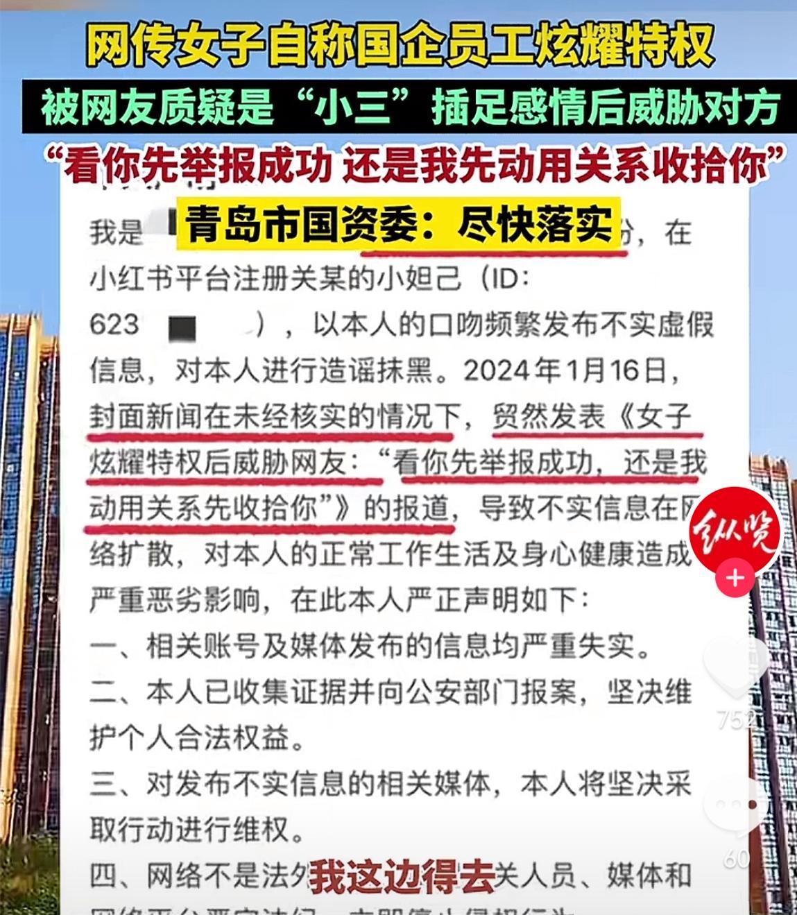 鬧大了!女子炫耀特權後威脅網友後續,本尊闢謠,國資委介入調查
