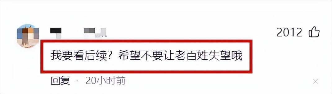 還有網友表示:“我要看後續?希望不要讓老百姓失望哦。”
