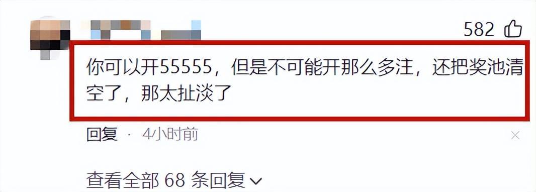 有網友說:“你可以開55555,但是不可能開那麼多注,還把獎池清空了,那太扯淡了。”