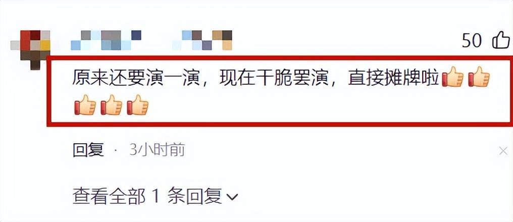 有網友說:“原來還要演一演,現在乾脆罷演,直接攤牌啦。”