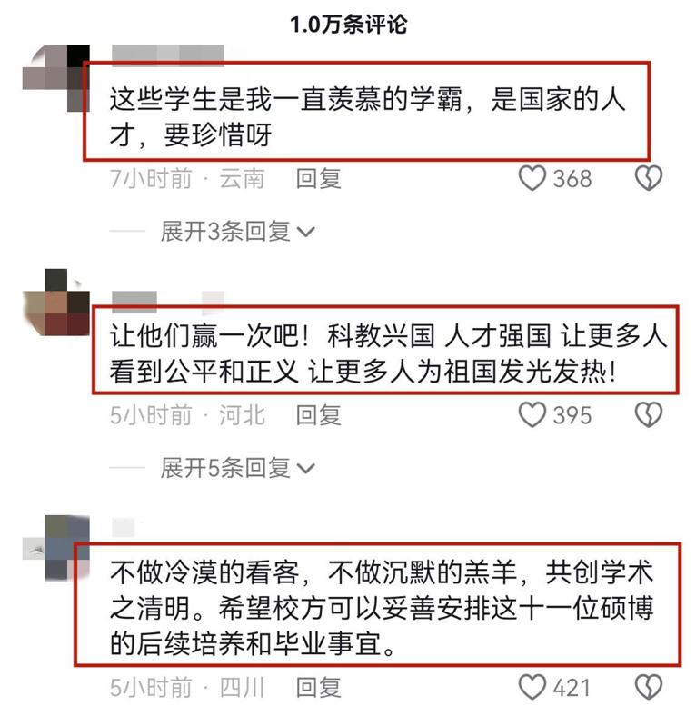 近日,在網絡上很多學生和網友爲11位學生搖旗吶喊,聲援他們。