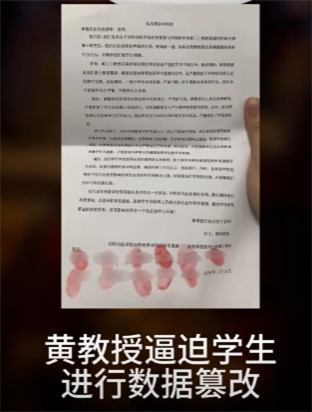 1月16日,一份舉報信在網絡瘋傳,舉報信內容長達125頁,由11名學生聯名舉報,他們主要舉報他們的導師黃教授。