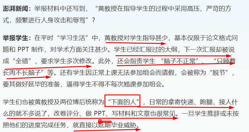 此外,11名學生還舉報黃教授存在侵吞科研經費、操縱同行評審、論文不當署名、教材編寫造假、打壓學生等行爲。