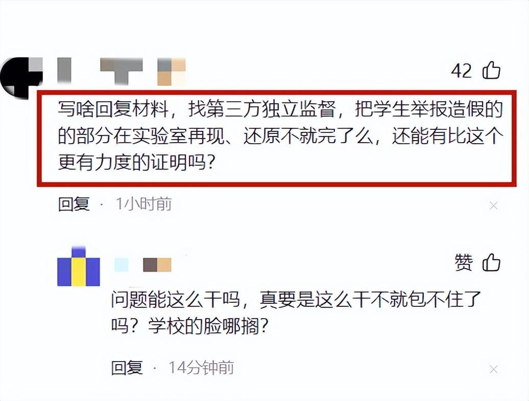 再次,網友直言黃教授沒必要寫什麼回覆材料,應該找第三方獨立監督,然後將學生舉報造假的部分在實驗室再現、還原就可以了,這比任何說辭都有力度。