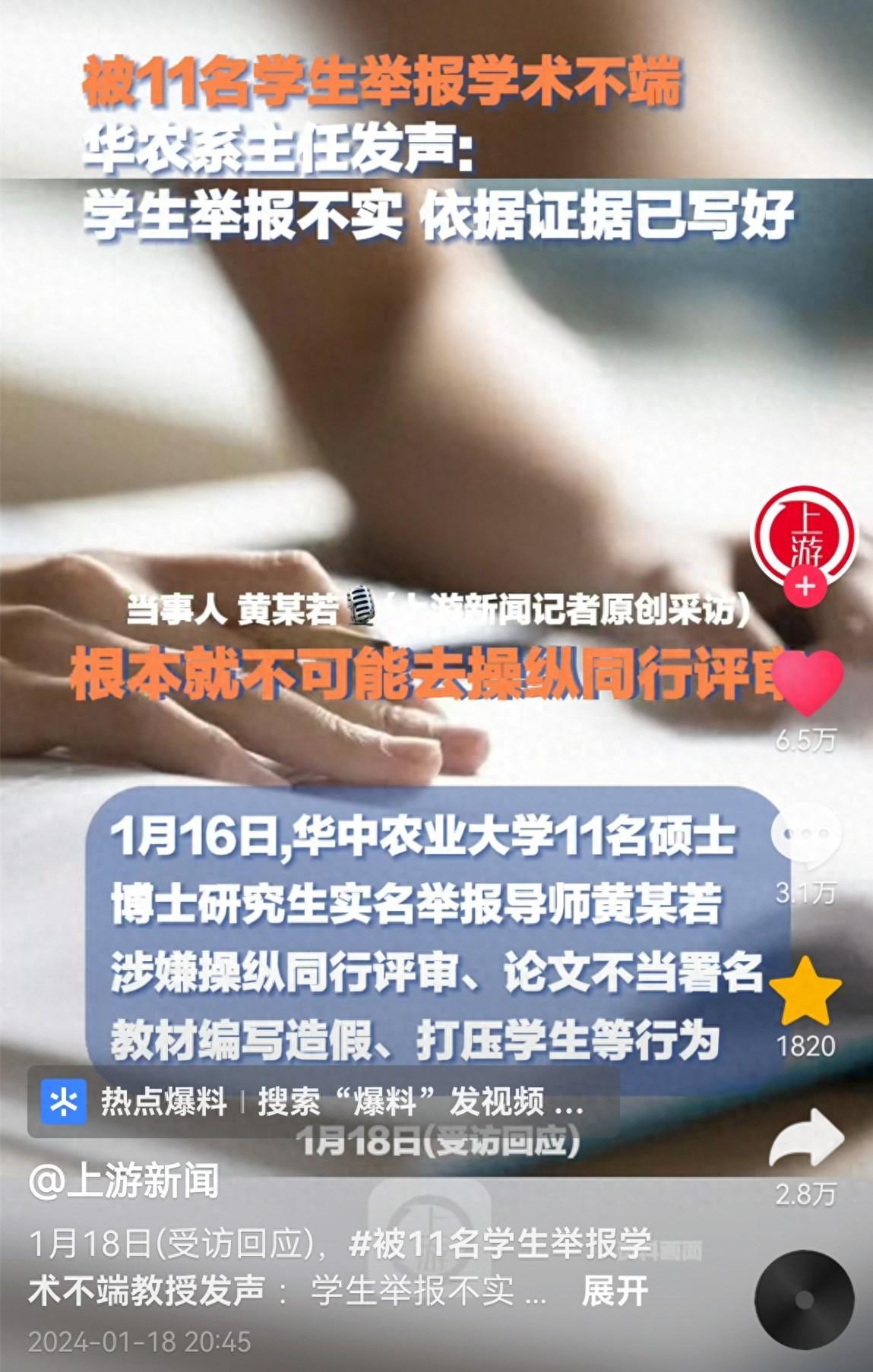 近日,華中農業大學11名學生舉報他們導師黃教授的事件鬧得沸沸揚揚。