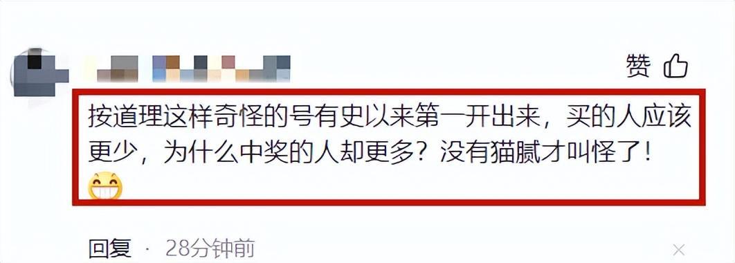 但依舊有網友不買賬,網友直言:“按道理這樣奇怪的號有史以來第一開出來,買的人應該更少,爲什麼中獎的人卻更多?沒有貓膩才叫怪了!”