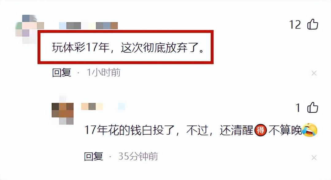 因爲這件事情戒彩的還有其他網友,比如一位網友說:“玩體彩17年,這次徹底放棄了。”