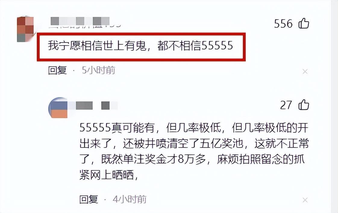 有網友說:“你可以開55555,但是不可能開那麼多注,還把獎池清空了,那太扯淡了。”
