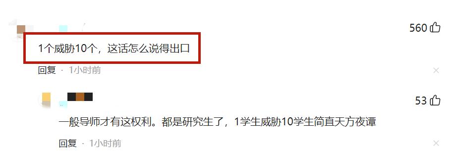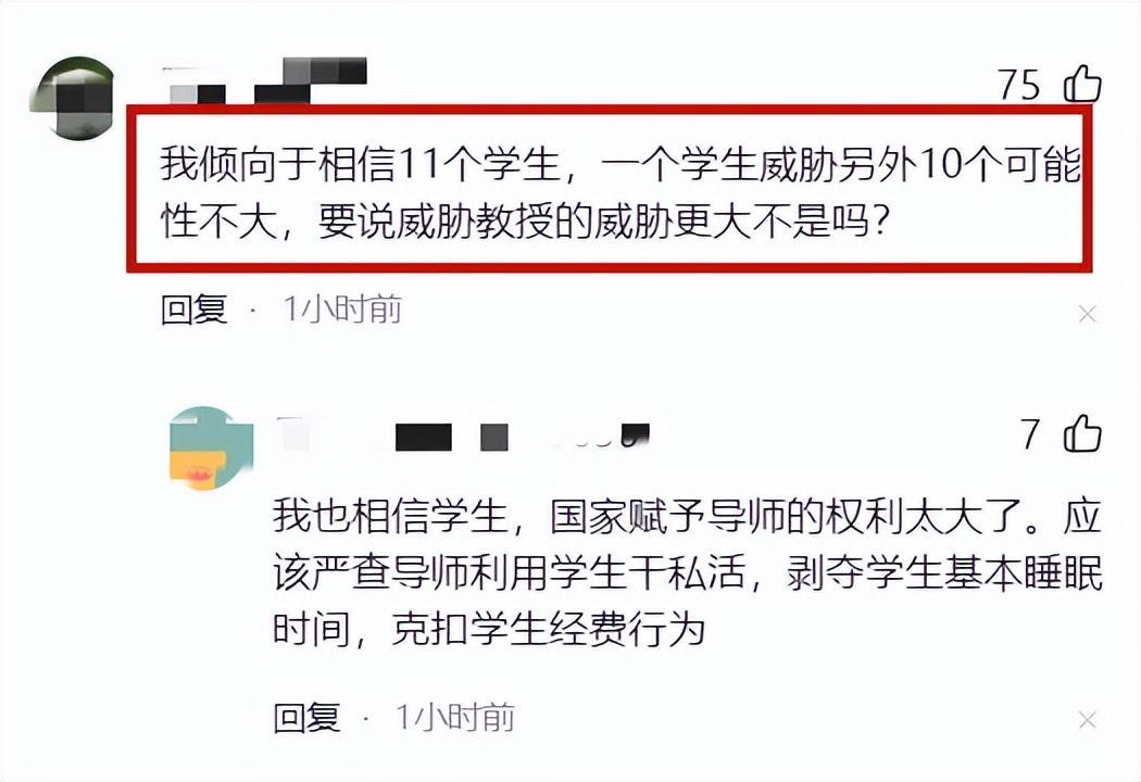 首先,網友們不相信一名學生能威脅其他10名學生舉報導師,反而大家認爲導師能夠做到威脅學生。