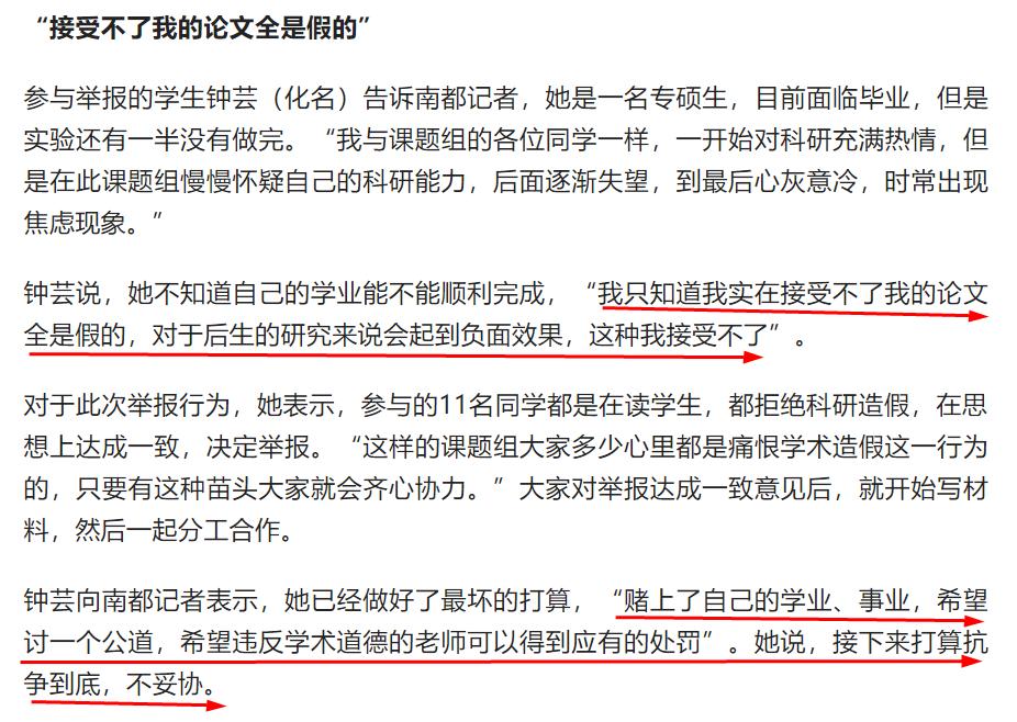 這11名學生寫了長達125頁的舉報材料,聯名舉報黃教授存在學術造假、侵吞科研經費、打壓學生等行爲。