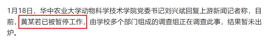 目前,黃教授已經被學校暫停工作,學校多個部門組成的調查組正在調查此事。