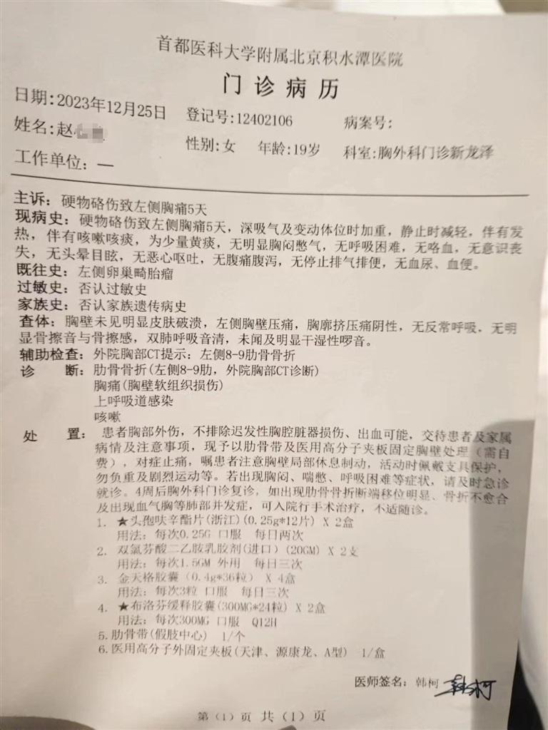 而從臨安中醫院到北京積水潭醫院,小趙歷時5天,這中間各種情況都可能發生,最初的診斷結果是不是肋骨骨折,必須明確,但現在沒有證據支撐。