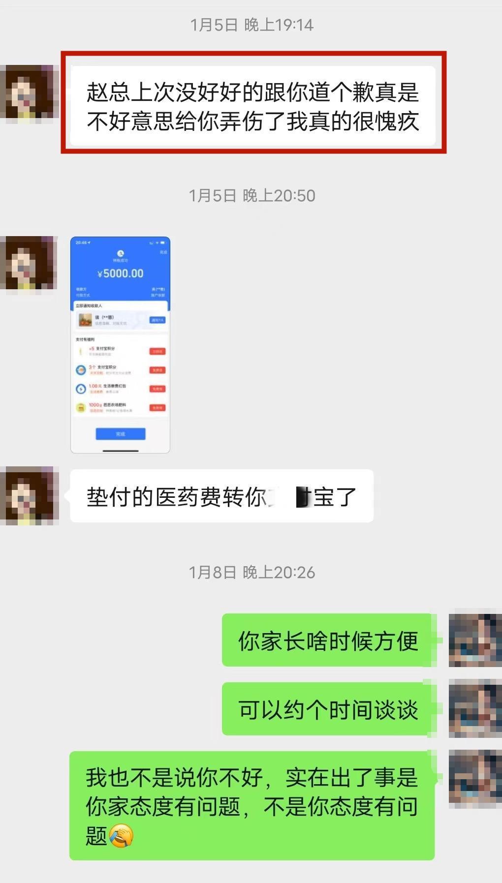 後來,肇事男生的姐姐又與小趙聯繫,她全程嬉皮笑臉,說這只是同學之間的打打鬧鬧,不是什麼大事情。
