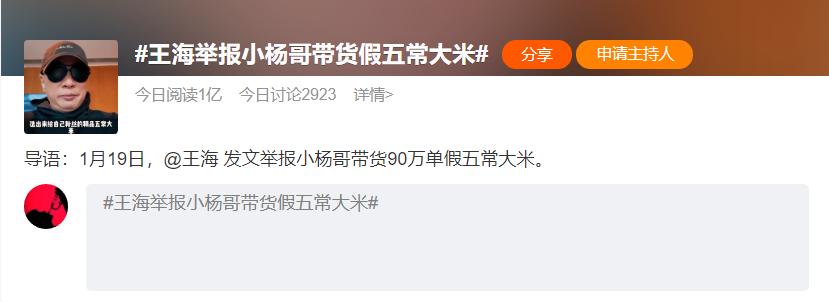 王海舉報小楊哥帶貨假五常大米,登上熱搜第一,小楊哥回應了!