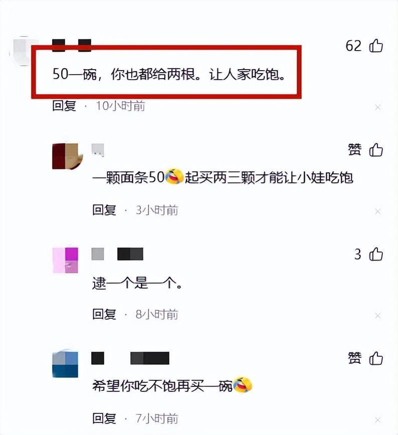 對於這對母子的遭遇,網友們都感到憤怒,畢竟50元一碗的面,連小孩都喫不飽,實在太坑人了。