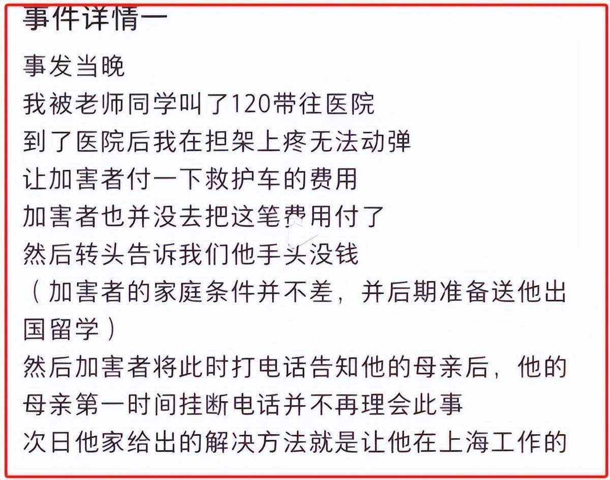 其次是肇事男生家人的態度。彼時肇事男生打電話告訴母親發生了什麼事情,結果他母親直接掛斷電話,不理會此事。