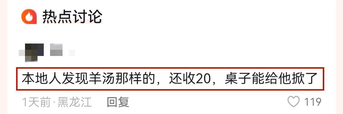 有網友說本地人發現羊湯是這樣的,還收20,桌子能給他掀了。