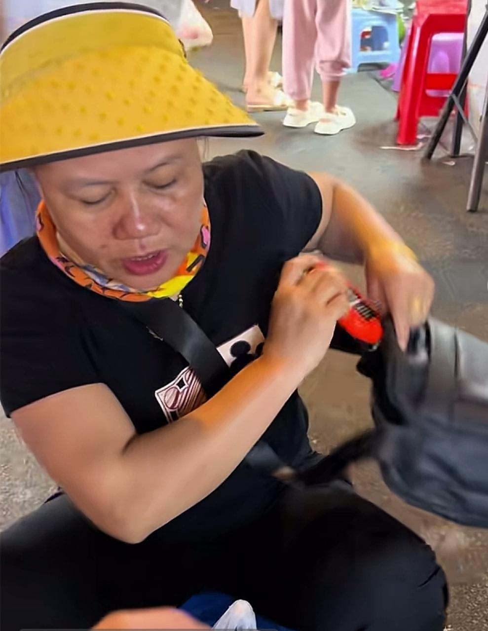 隨後,女攤販便將秤放進隨身攜帶的黑色包包裏。