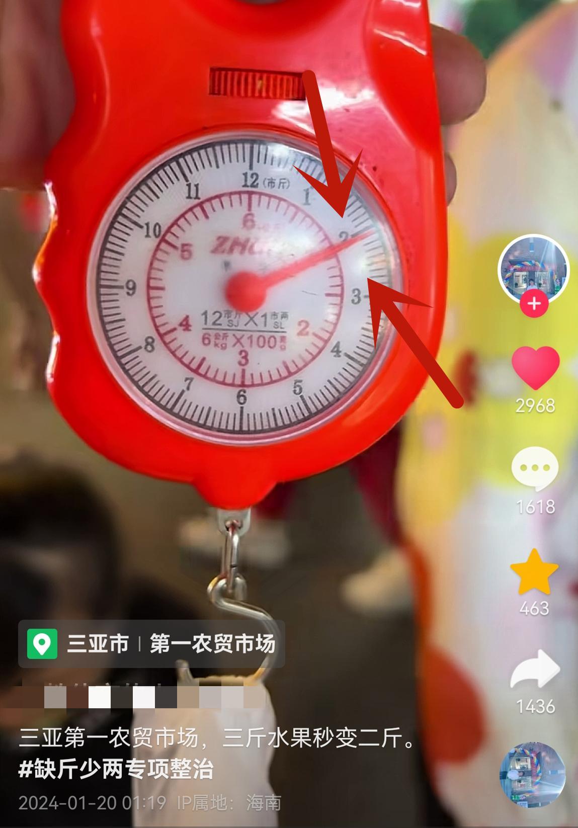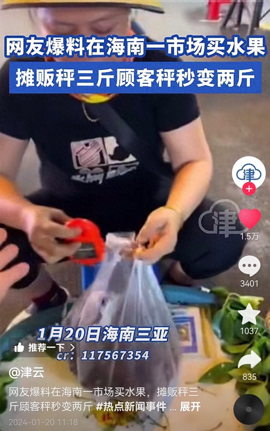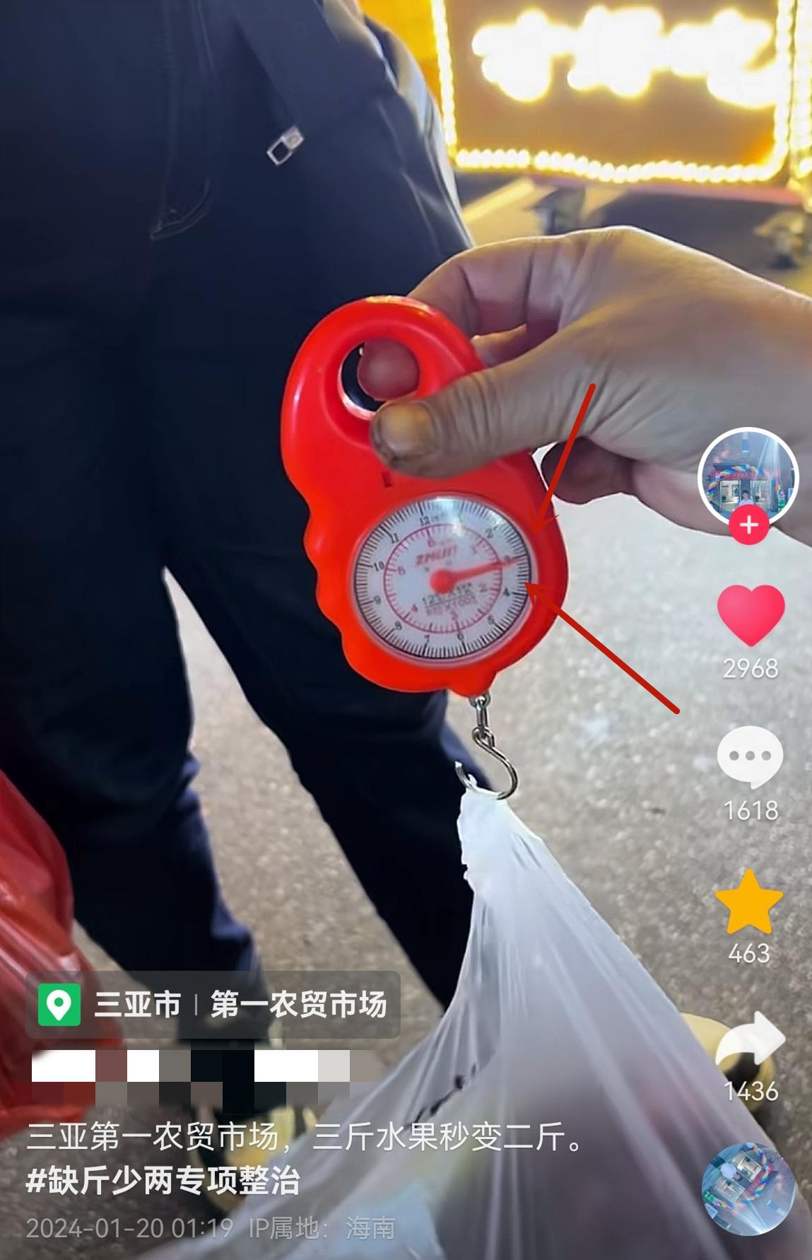 有遊客在三亞買水果,遭遇“鬼秤”,3斤變2斤。