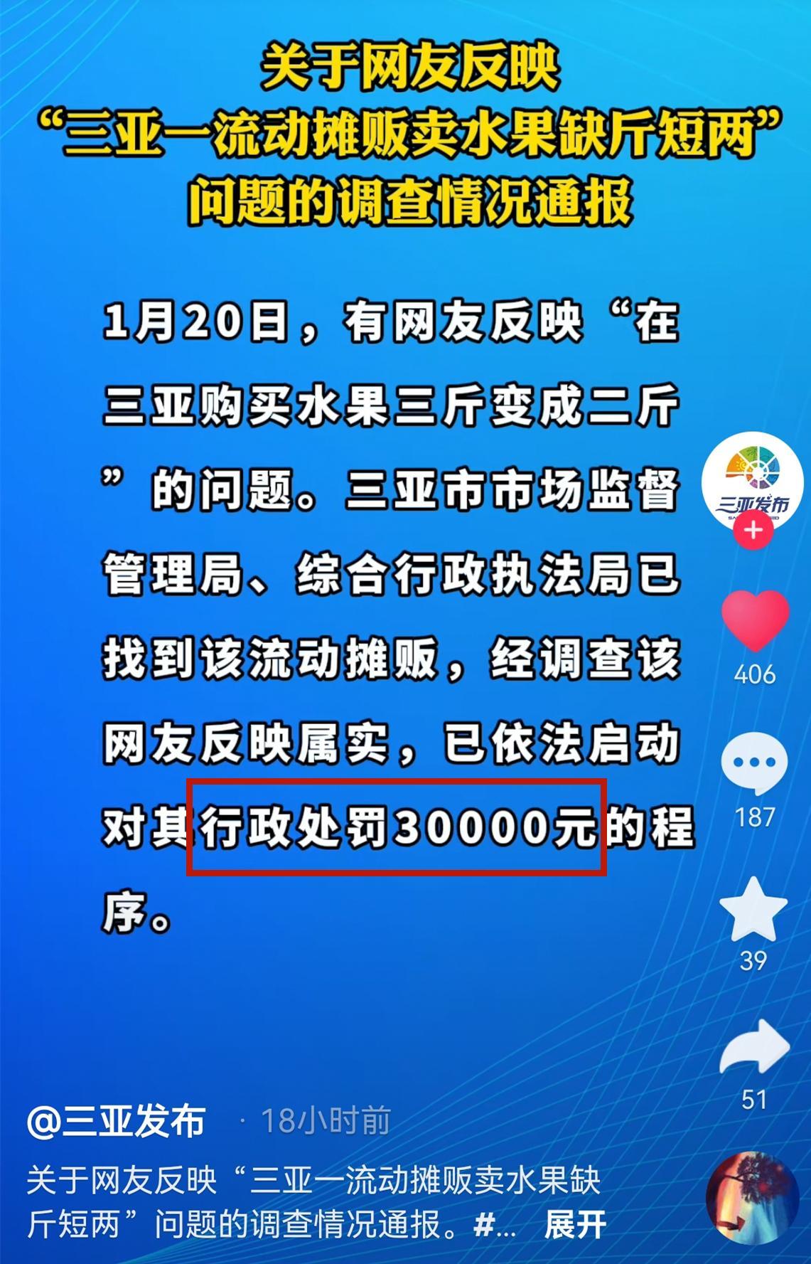 水果3斤變2斤後續:三亞口碑受影響,官方回應了,女攤販悔不當初