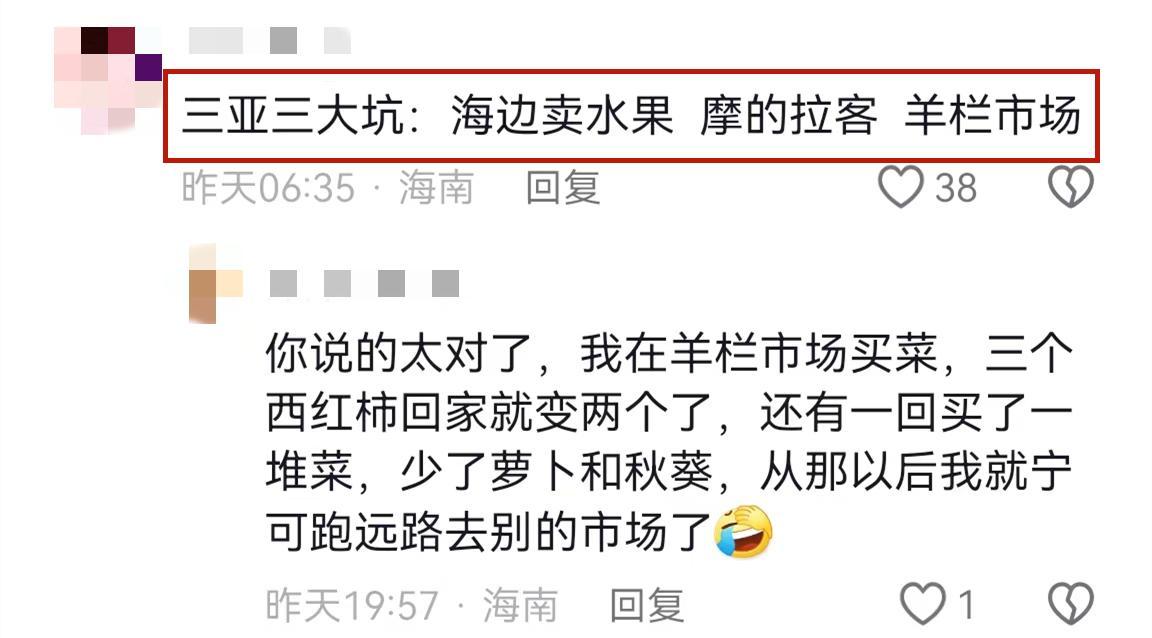 更有海南網友直言三亞有三大坑,分別是:海邊賣水果、摩的拉客、羊欄市場。
