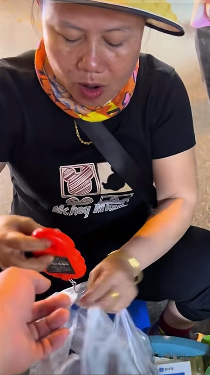 隨後,女攤販便將秤放進隨身攜帶的黑色包包裏。