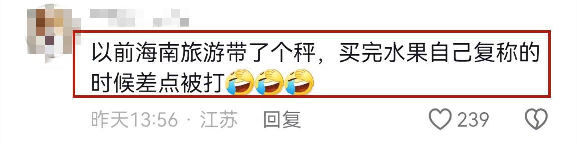 還有網友表示他以前到海南旅遊,自己帶了一個秤,買完水果要拿自己的秤複稱的時候,差點被商家打了。