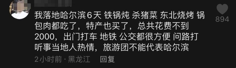 還有網友說花了2000元在哈爾濱該玩的都玩了,非常開心,該網友建議吐槽女子不要跟團遊。