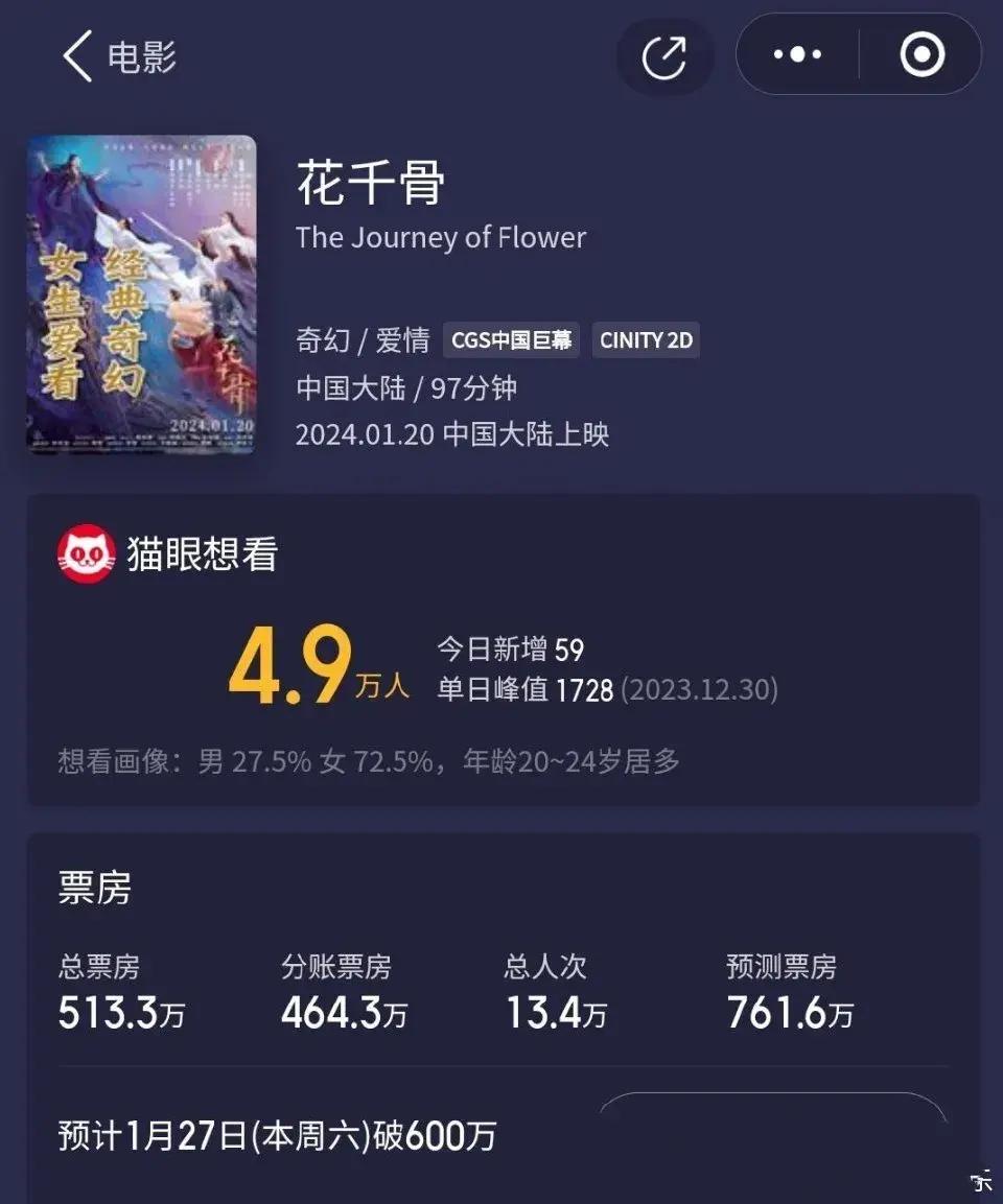萬萬沒想到,票房直接撲街了,電影《花千骨》在各大影院上映,首日票房才200多萬,四天累計票房才500多萬,甚至有網友調侃:這樣的票房估計連一個演員的片酬都不夠!