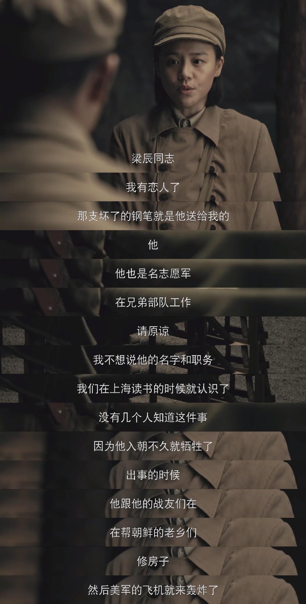 正如梁辰和文婕之間的情感,不僅是愛的寫照,更是每一名志願軍與戰友、與祖國、與人民之間的感情紐帶和依託。