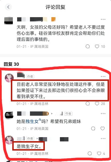 該親屬直言於軒一的父母目前很堅強很冷靜地在處理這件事情,但她擔心等簽證辦下來,等他們到了美國看到了女兒的屍體,他們會承受不住。