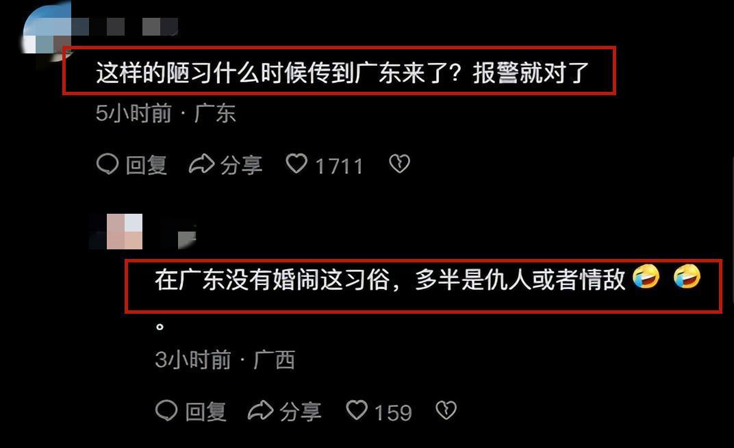 很多網友批評廣東竟然有如此惡劣的婚鬧習俗。