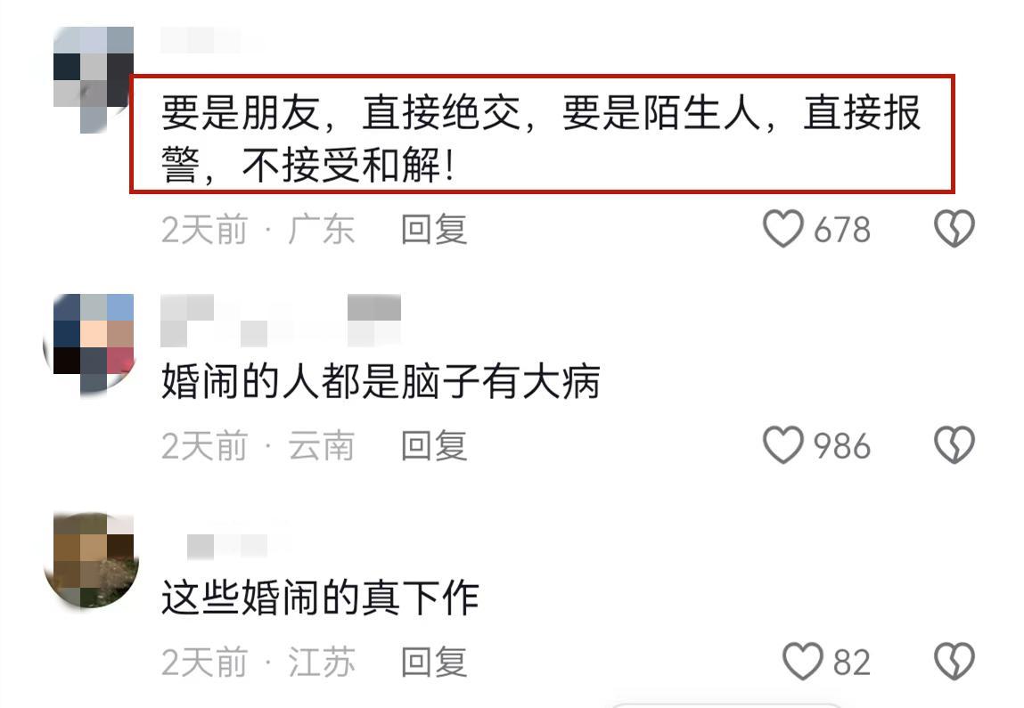 有網友更是直言“要是朋友,直接絕交,要是陌生人,直接報警,不接受和解”。