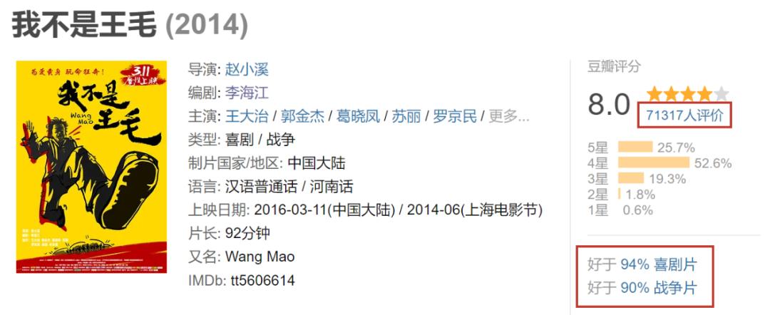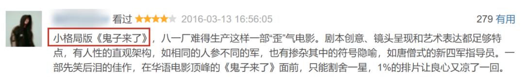 4星、5星的評論裏,有評價很高:小格局版《鬼子來了》,一部先笑後淚的佳作。