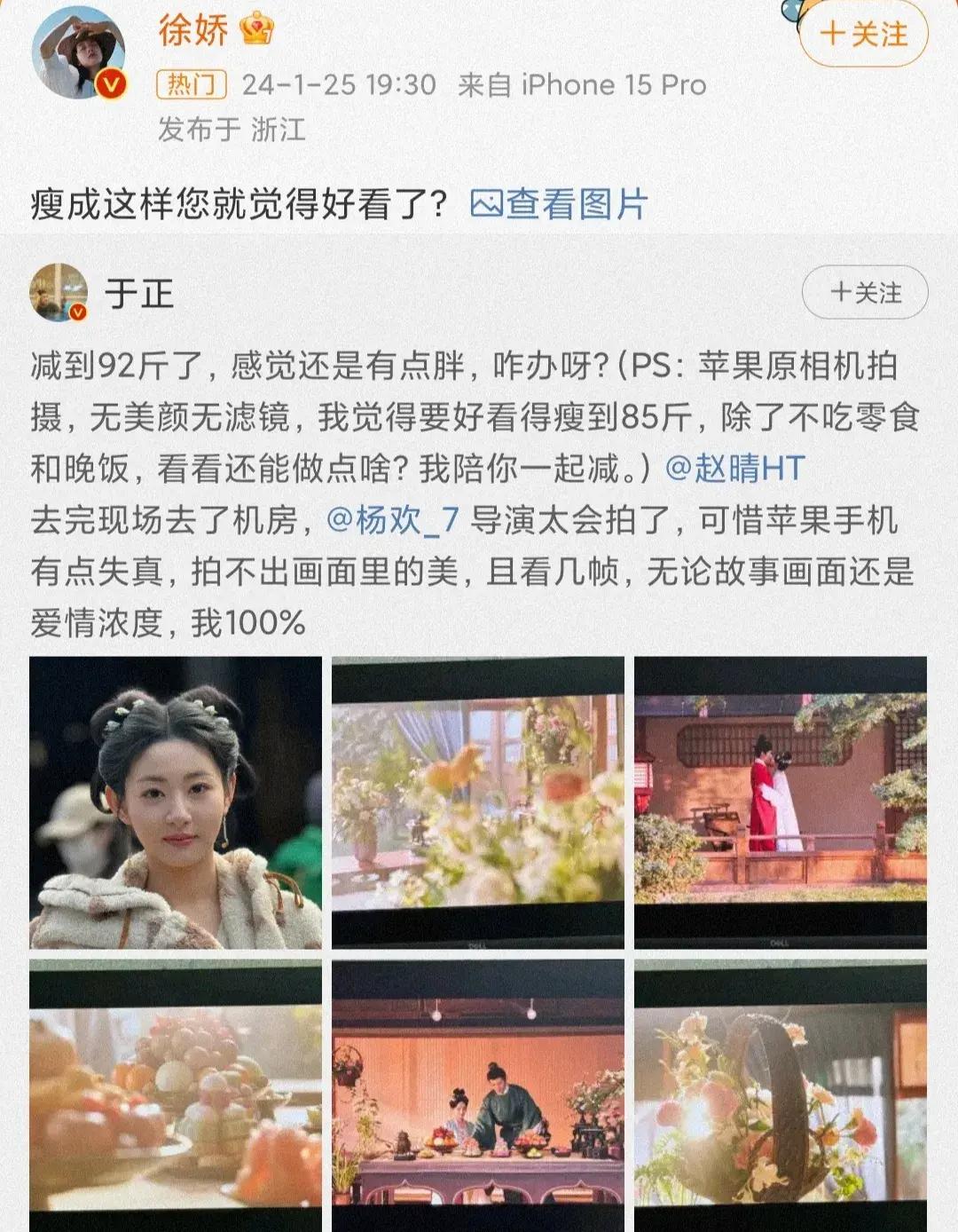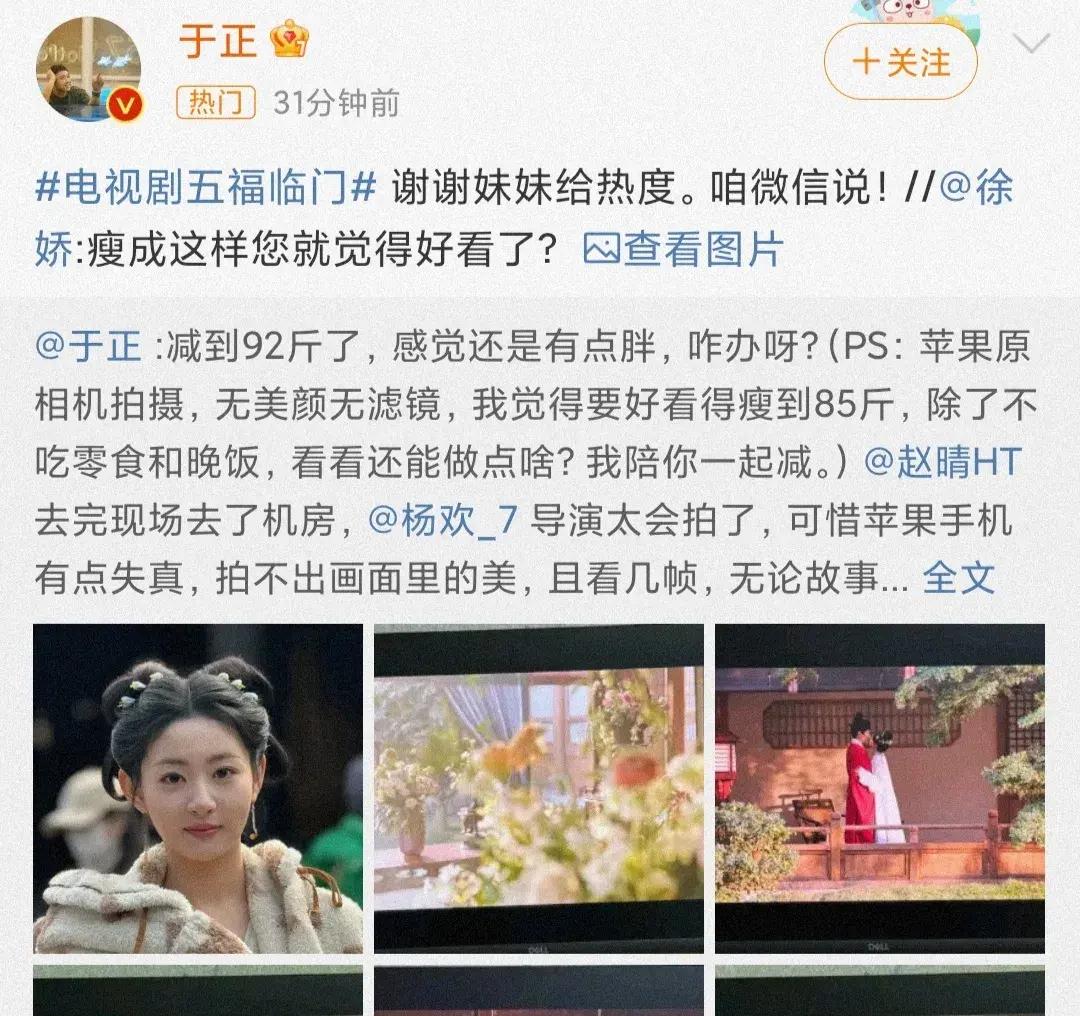 徐嬌在評論區曬出與好姐妹的劇照,表示: “趙晴比我高將近半個頭,92都已經是極限瘦了,要讓人瘦到85是有多歹毒”,這……,很明顯是說給於正聽的。