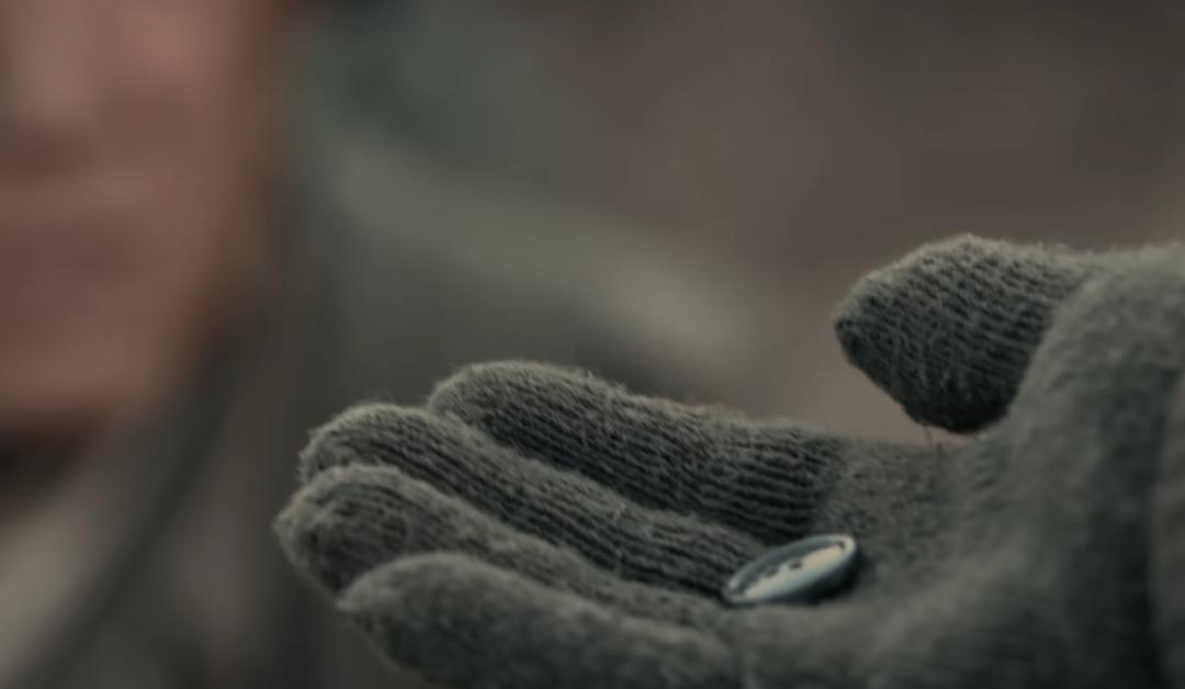 僞軍在某處山坡搜捕時,發現了一顆志願軍軍服材質的紐扣。