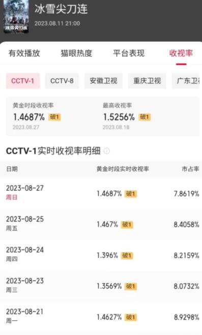 4個月期間,該劇在包括央視在內的8大電視臺瘋狂輪播,日收視基本維持在1.5的可觀數據。